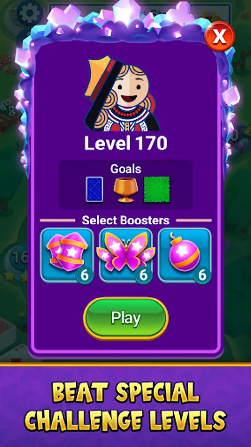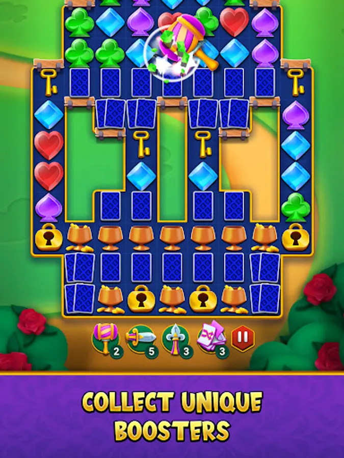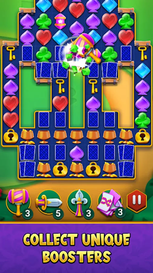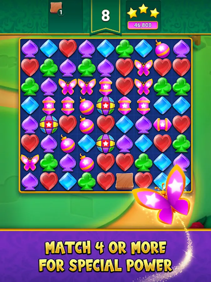Swap and match three or more Solitaire themed gems while crushing through challenging obstacles across thousands of exciting levels. Strategically blast your way through exciting puzzles to collect stars and progress through the saga map.