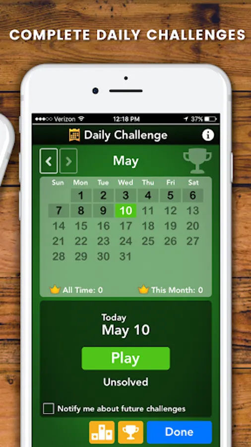 Train your brain with our great puzzles and solve each Daily Challenge to receive a crown for that day. Earn trophies each month by winning more crowns! Play our Daily Challenges and Solitaire FREE!
