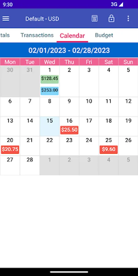 * Day of Month and Days repeat types. You can add bills/income repeating every third Wednesday or every certain number of days