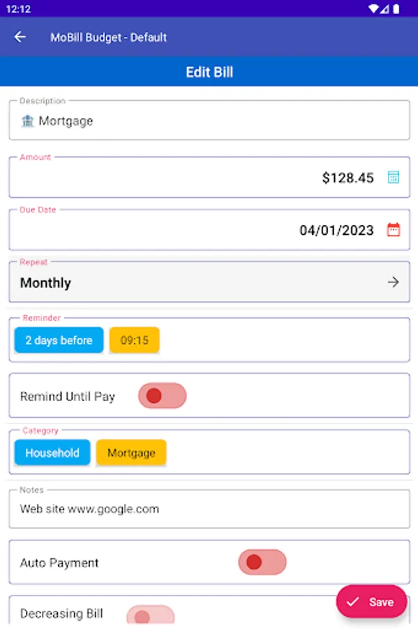 MoBill Budget and Reminder is a personal finance, bill reminder and budgeting app. It helps you to keep track of your bills, expenses and income easily and quickly with budgeting functions as well as reminders, reports and charts.