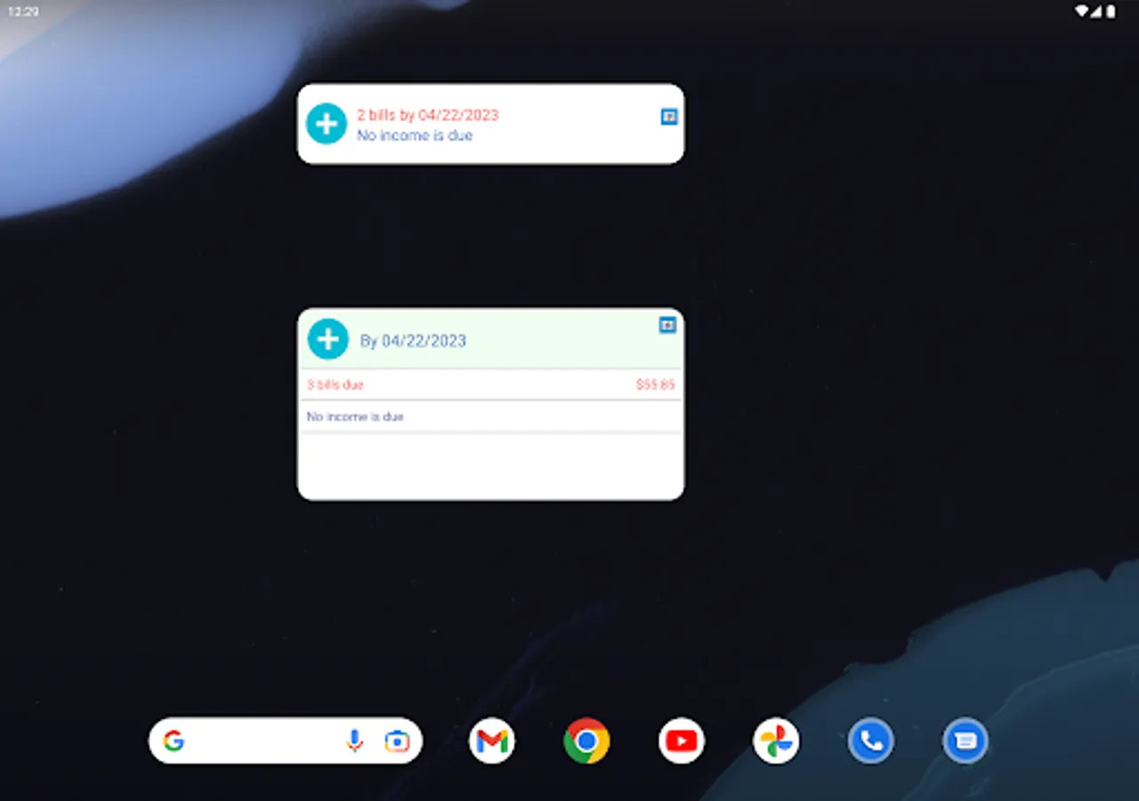 * Home Widgets that shows incoming bills and income with or without the amounts.