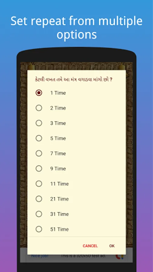 Repeat options for Ambe maa aarti, Ambe maa stuti and Ambe maa thal