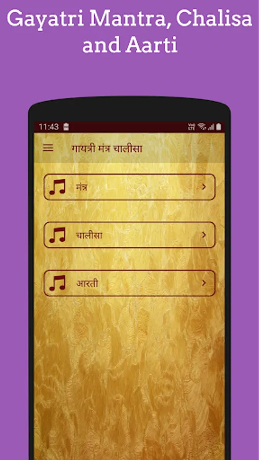 Gayatri Mantra and Chalisa app is one of the best Gayatri chalisa app for the all devotees of Shree lord Gayatri. This app contains Gayatri chalisa, Gayatri aarti and Gayatri mantra which you can play/pause.