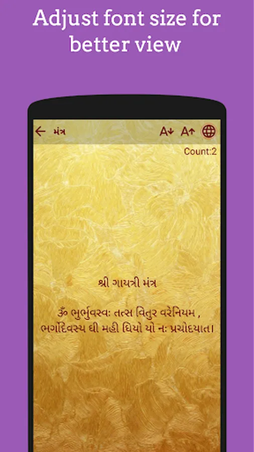 Languages Support: Currently Gayatri chalisa and mantra app has 3 language support. Gujarati, Hindi, and English. Easy to change language at the time of prayer for shree gayatri ji.