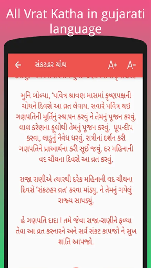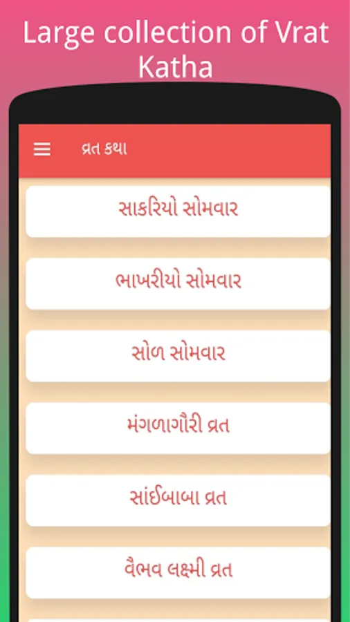 Languages Support: Currently Vrat Katha app has Gujarati language support
