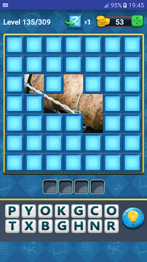 Tap the tiles to reveal hidden squares from the picture. As soon as you think you know what it is, take a guess! The less tiles you open - the more coins you get!