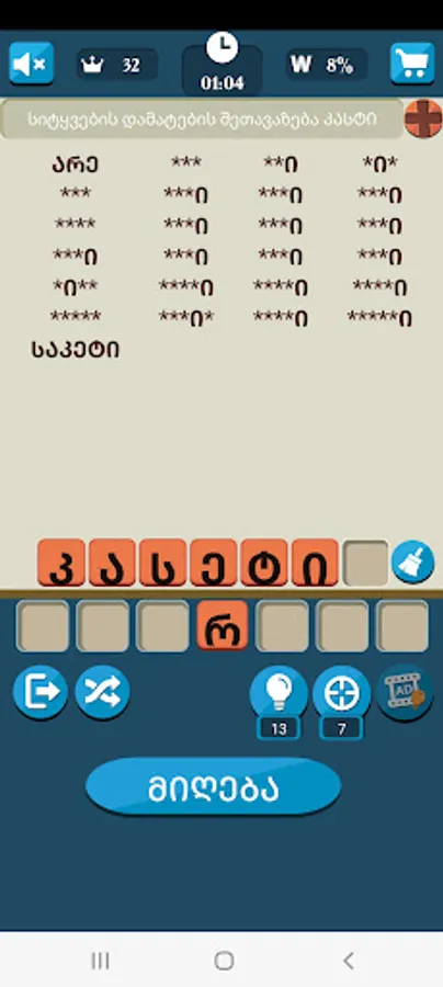 Make Words is a georgian word game, classic brain teasing addictive word games in the market.