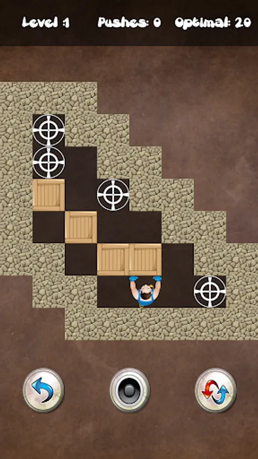 Remember, you can only push the boxes. You can’t push the boxes into other boxes or walls and you can’t pull them. The puzzle is solved when all boxes are at target locations. You will get one, two or three stars for each solved puzzle.This puzzle game is a wonderful trainer for your brain.