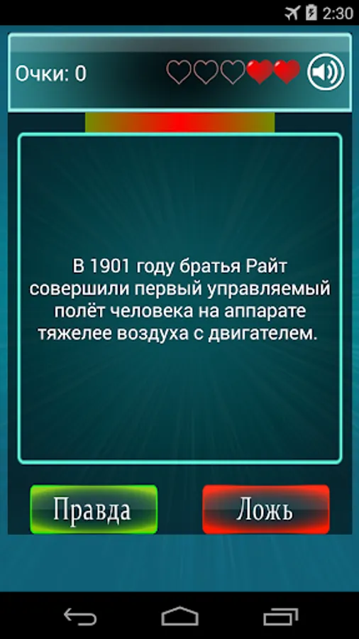 True or False Game - is a fun quiz that allows you to plunge into the world of incredible and amazing facts, test and improve your knowledge in various fields. In this game - you need a quiz to determine whether the statements true or false. We look forward to a variety of game modes for 1-4 players.