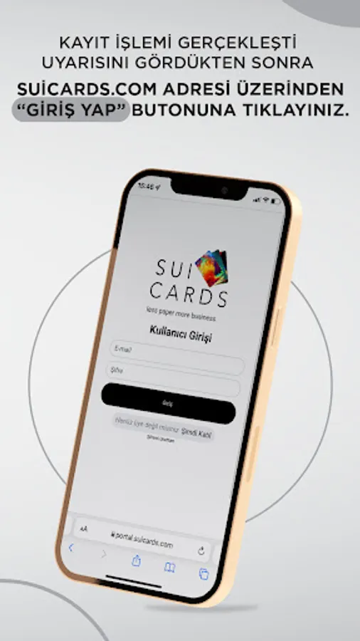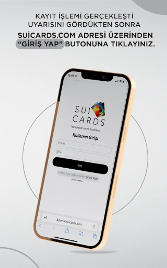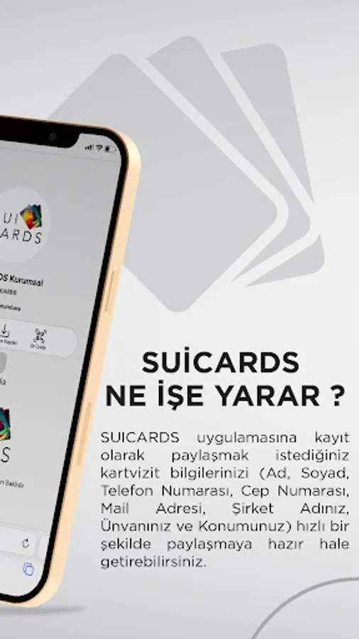 By registering with the SUICARDS Application, you can quickly prepare your business card information (Name, Surname, Phone Number, Mobile Number, Mail Address, Company Name, Title and Location) that you want to share.