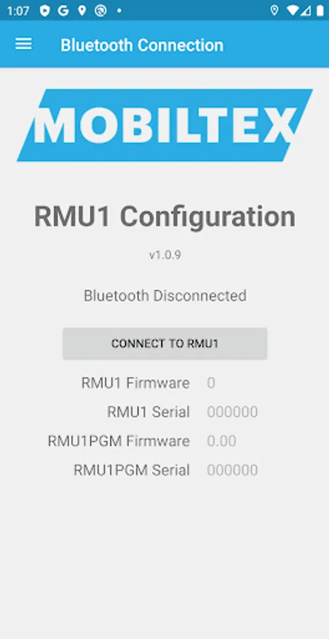 This app is for configuring the corTalk® RMU1 (Remote Monitoring Unit 1) with the new RMU1 Bluetooth Programming cable. The cable functions as a complete RMU1 programming interface but only requires the Bluetooth connection of your phone and a USB power source.