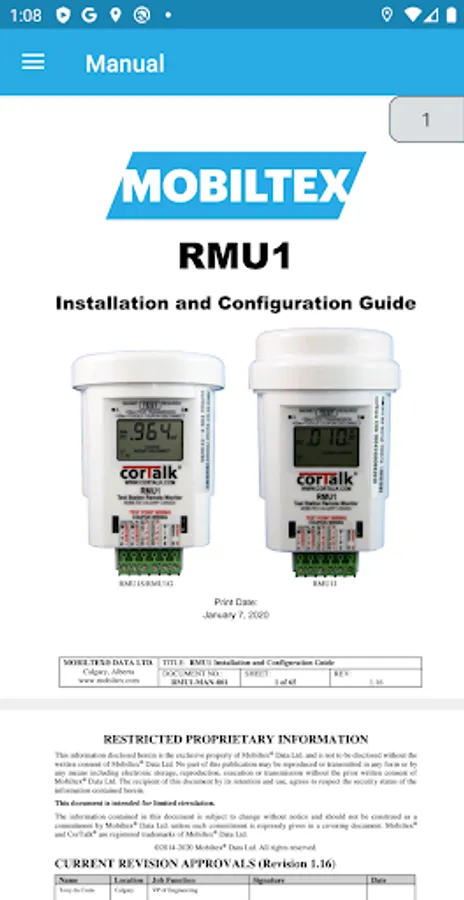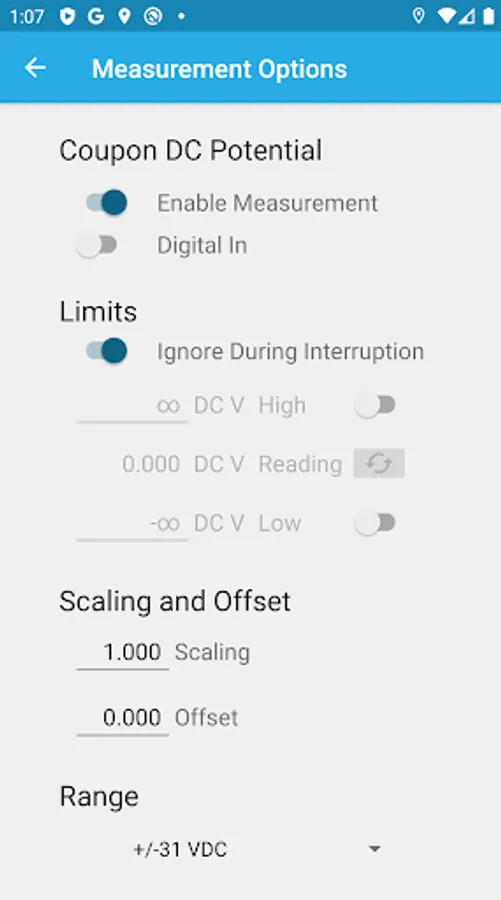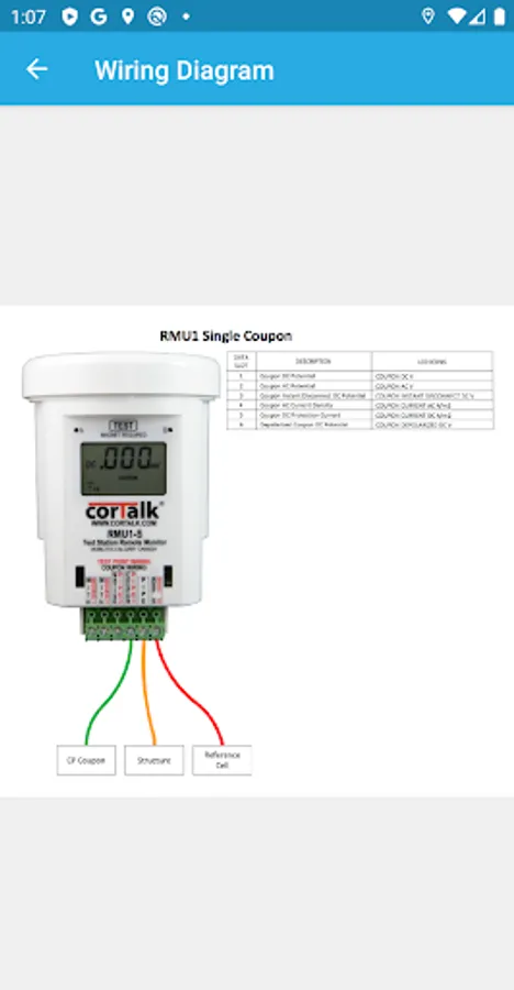 The RMU1 is used to monitor a cathodic protection bond with accurate measurement of a wide variety of signals. This app allows access to diagnostic information on the RMU1 and allows setting up the configuration to meet the customer's needs.