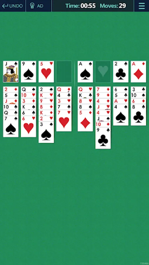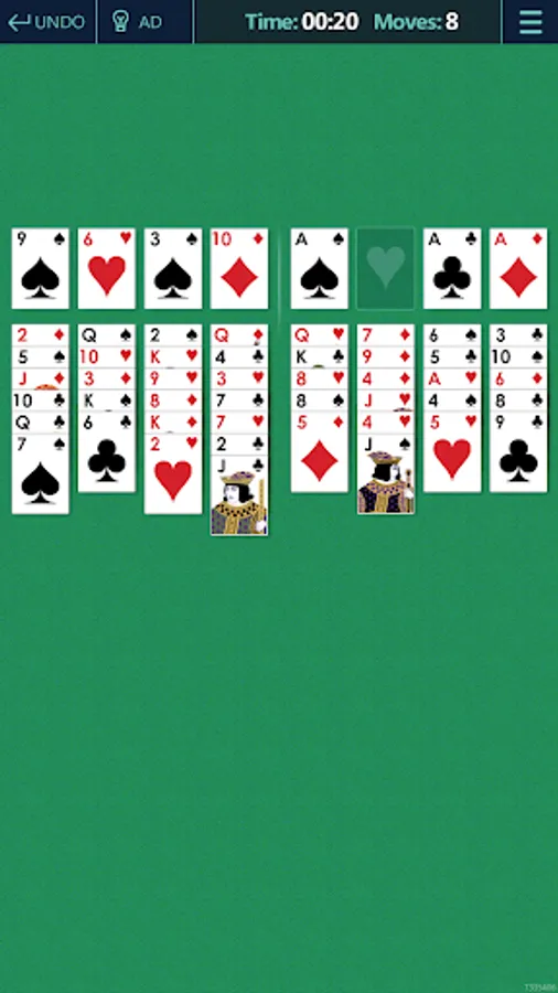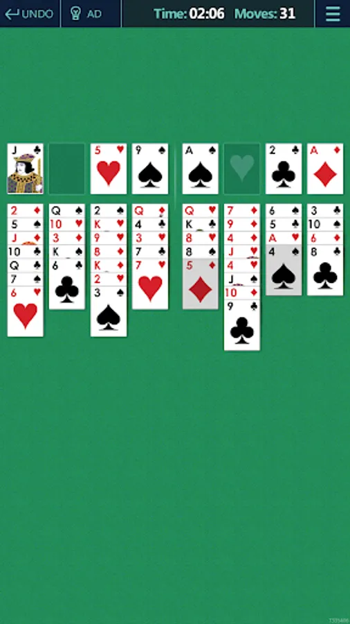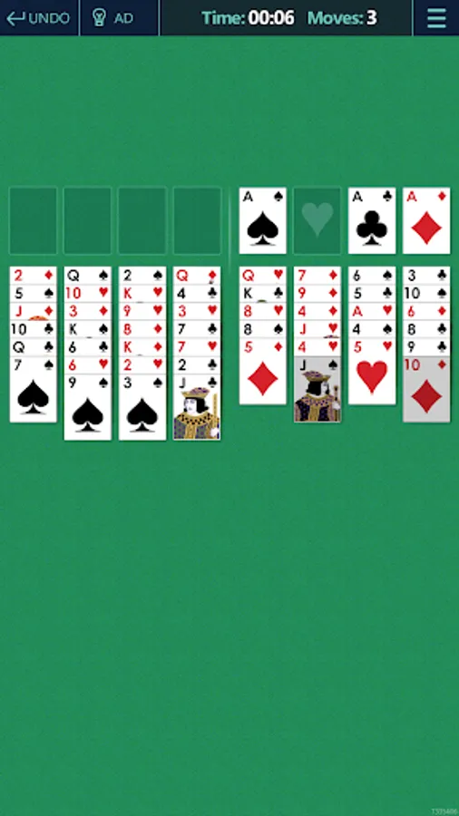 Try to play it safe in the beginning by moving only Aces and twos into the home cells. Don’t try to move all the cards at once since you might need them as a placeholder to free other cards deep in the tableau.