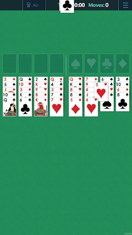 What separates FreeCell Solitaire from other free solitaire games is the four free cells in the top left. You can move cards to and from the free cells at any time as needed, but you can't stack cards there. If you need a refresher on solitaire rules, check out the "Help" section in the in-game menu.