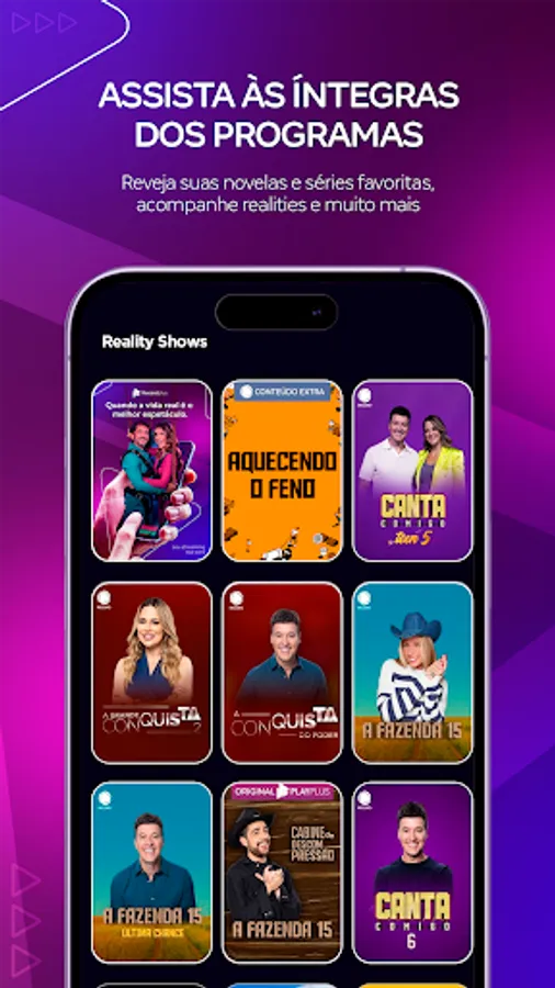 - Full coverage of Record's soap operas, series, reality shows, entertainment programs, and news programs;