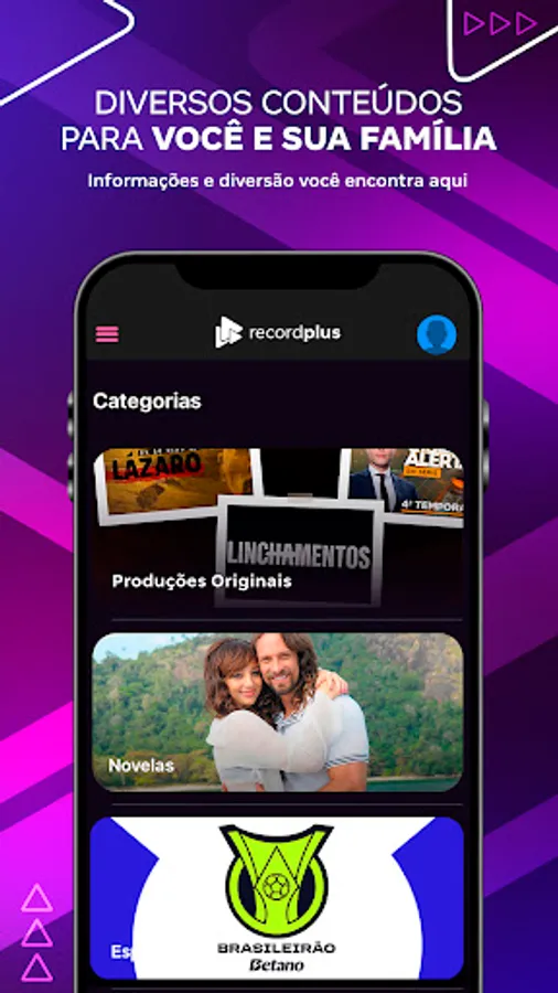 - Exclusive live broadcasts of Record's reality shows; - Original and exclusive productions;