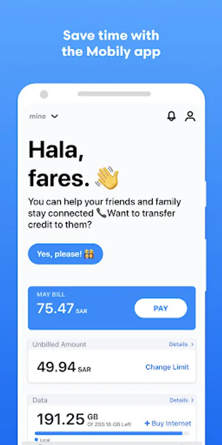 Take control of your Mobily products and services with the all-new Mobily App. Updated to include a modern, clean and highly intuitive look and feel, Mobily App streamlines your account management experience giving you fast access to all your important account info and more. With new features and improvements added regularly, you’ll be able to do more than ever before.