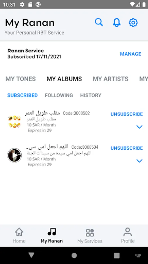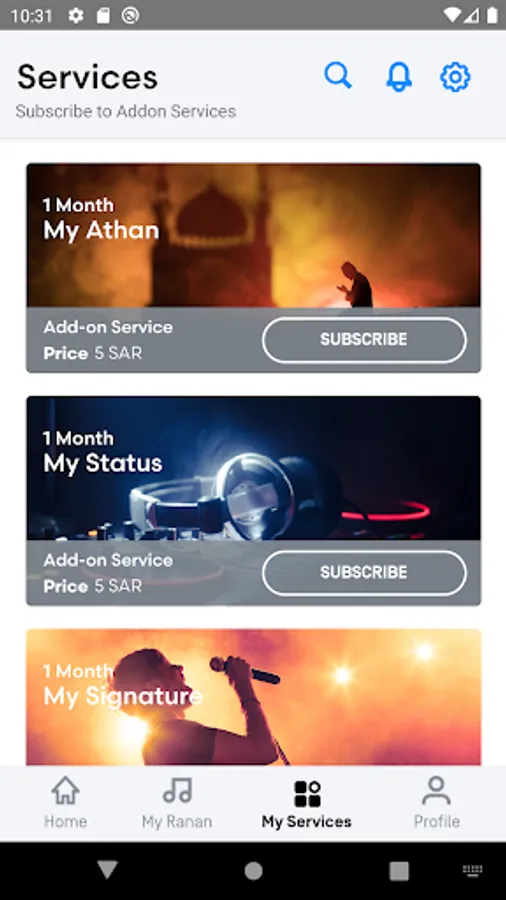 • Subscribe to Ranan Service and all sub-services directly from the APP