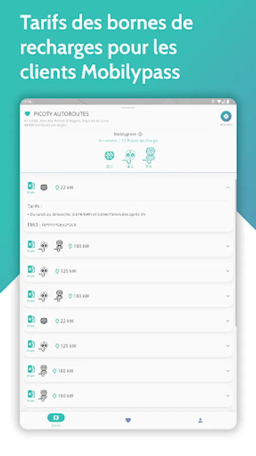 - You have detailed information on the charging station: precise address, number of charging points, type of connectors, prices, etc.