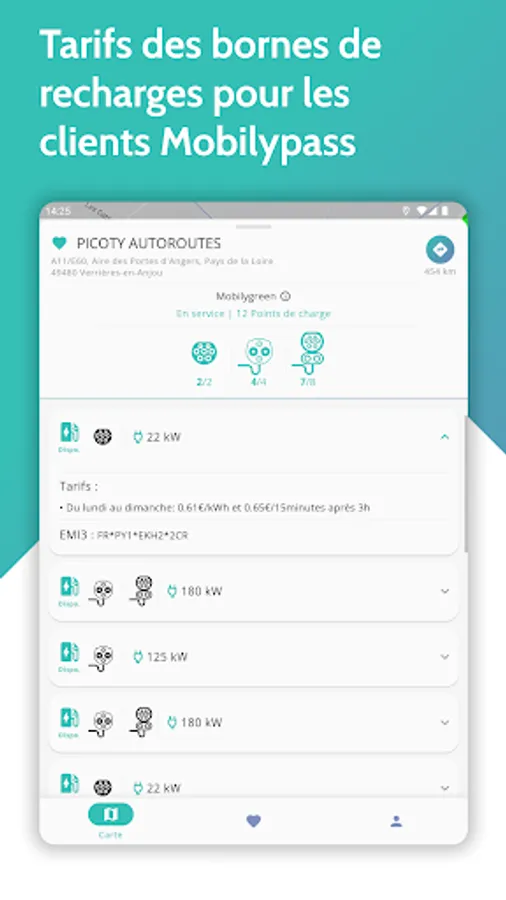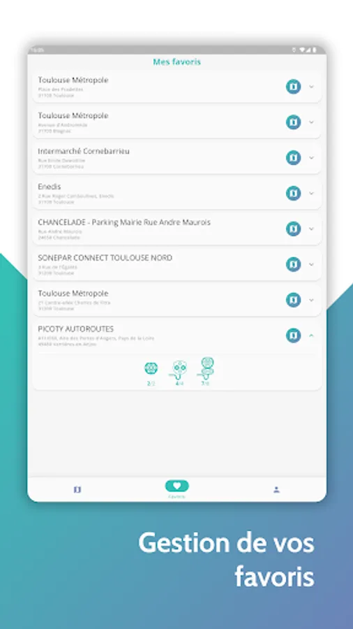 - You have reliable and real-time information on the status of the terminals (free, occupied, out of service): no more unpleasant surprises!