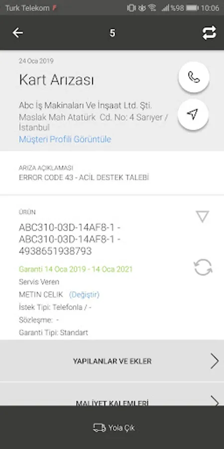 fieldco. The technical service program can also track your work with its flexible structure. It can be used for both IOS and Android on mobile devices in the field, and allows service companies in the service center to use the application on workstations with tablets or phones, and follow their work flows instantly.