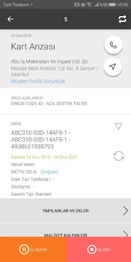 fieldco. The technical service program can also track your work with its flexible structure. It can be used for both IOS and Android on mobile devices in the field, and allows service companies in the service center to use the application on workstations with tablets or phones, and follow their work flows instantly.