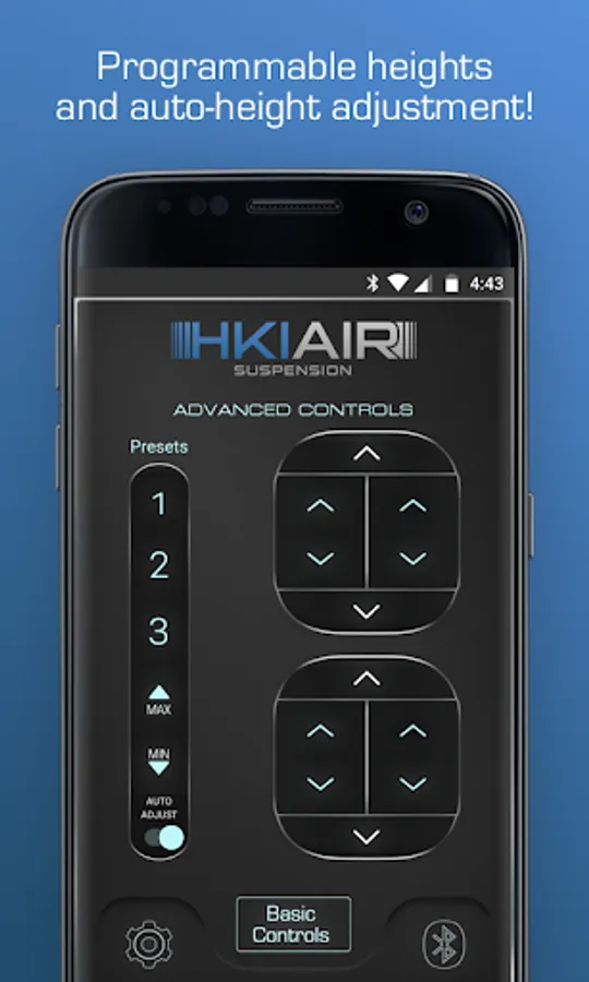 The HKI Air Suspension app was developed so you can control the HKI Air Suspension system on your Android, via Bluetooth.