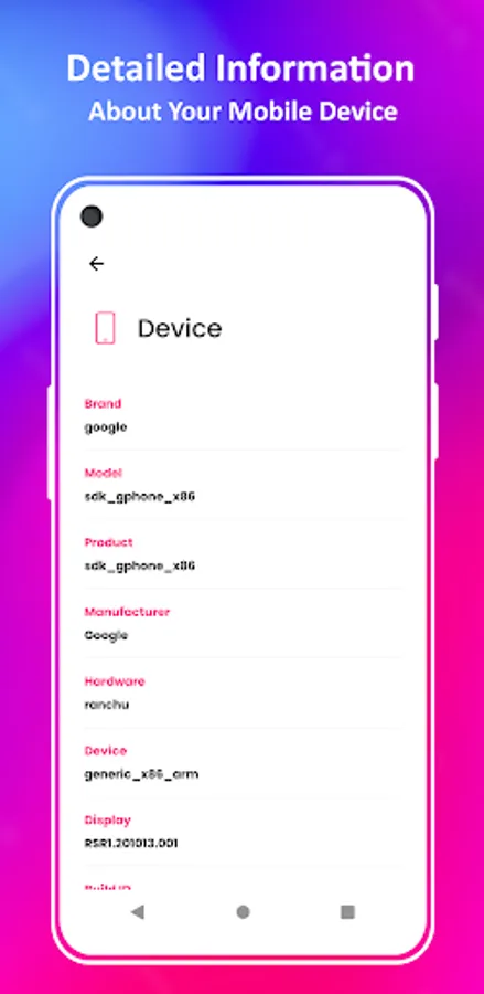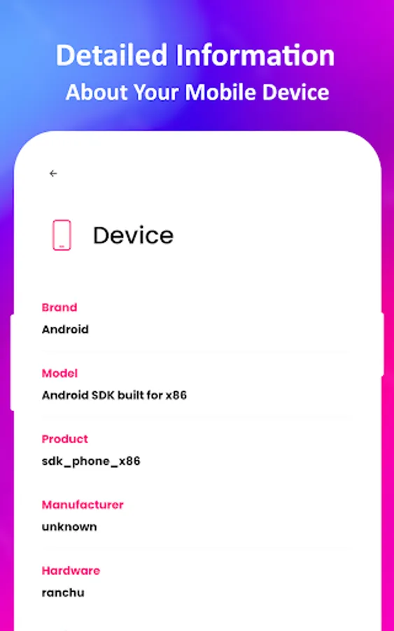 Device: Get information about the Brand, Model, Manufacturer, Board, IP, Mac and Build ID and many more