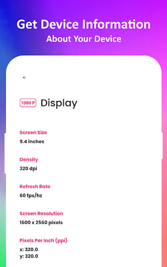 Display: Get information about Screen Size, Density, Refresh Rate, Screen Resolution and Pixels per Inch (ppi)