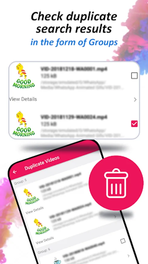 ☑ Find duplicate photos from gallery, audios, videos, gifs, documents (pdf, word, excel sheets, text file, html web pages, powerpoint slides), others files (zip, apk, rar), cache and junk files within seconds using the most powerful, efficient and super fast proprietary duplicate finding algorithm
