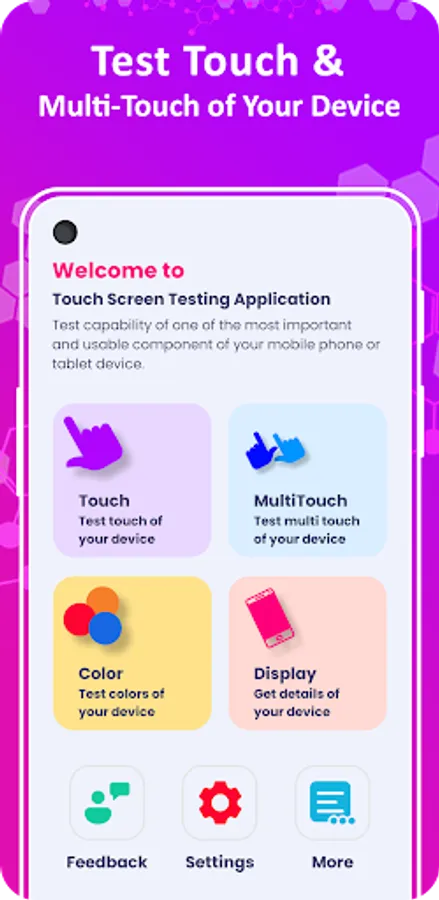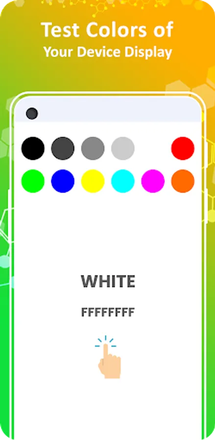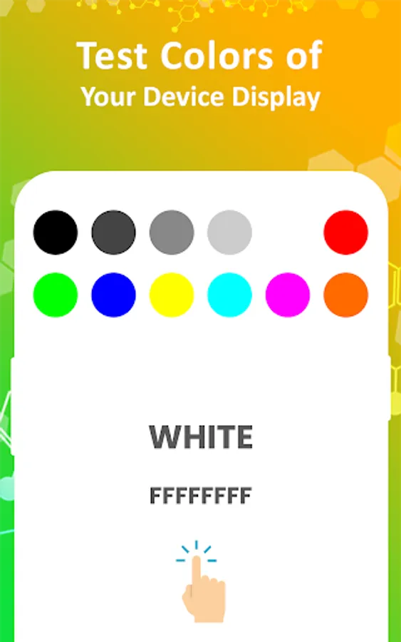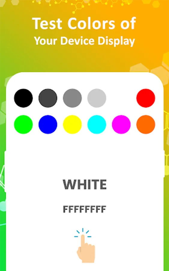 This tool draws multiple colors with respective color codes on the full screen of the device. It allows users to analyze and examine the rendering of different colors on the screen of your mobile phone or tablet device.