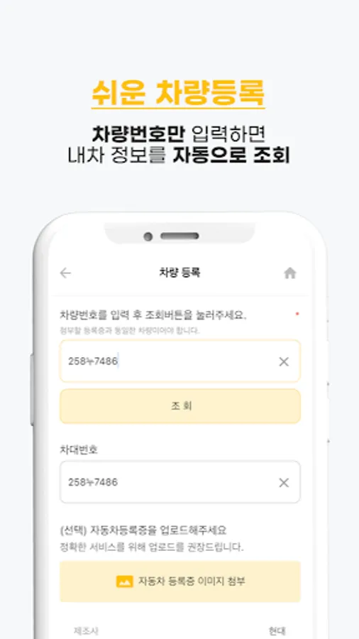 Easy vehicle registration by simply entering the vehicle number By simply entering the vehicle number, your vehicle information is entered at once, making it easy to register even if you have multiple vehicles.
