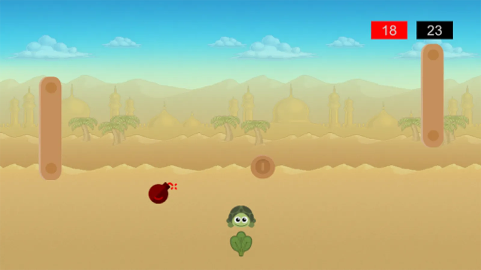 You will encounter bonuses and traps. The spinach will enlarge the rackets, the bomb must be caught in 15 strokes, and the turtle bonus will slow down the ball.
