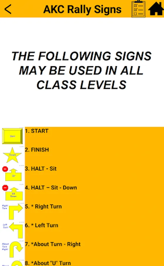 AKC Rally Signs App is a quick reference guide application of the rally signs. The signs used in the app are used by the AKC as part of the AKC Rally Program.