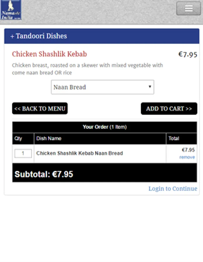 Namaste has an extensive menu which will suit all types of tastes and you can select starters like Lasooni Chicken which is a Traditional Indian dish marinated in garlic sauce and herbs and cooked in a clay oven or a Main Course like Chicken Karahi which is boneless diced chicken cooked with onions, capsicum, tomatoes in mild to medium curry sauce flavoured with spices & fresh coriander leaves.