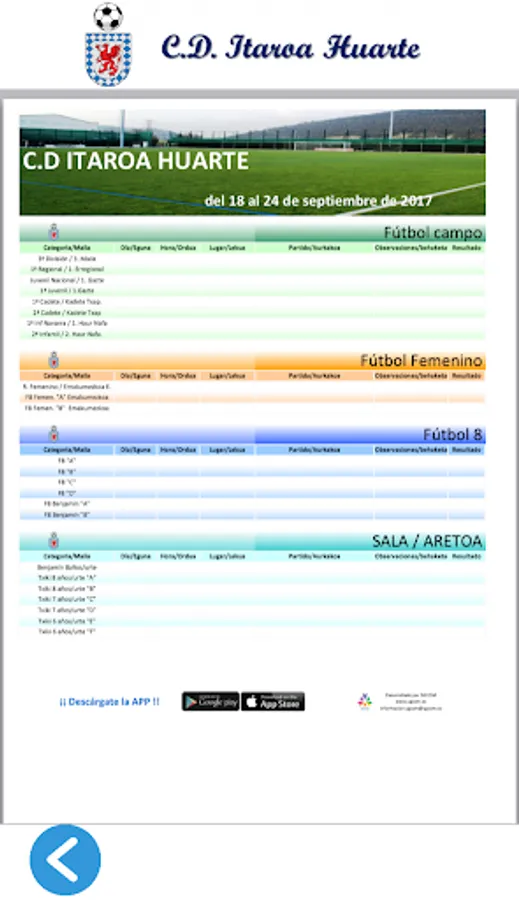 This application is intended to facilitate the work of coaches, parents, players and people involved with CD Huarte Itaroa level communication.