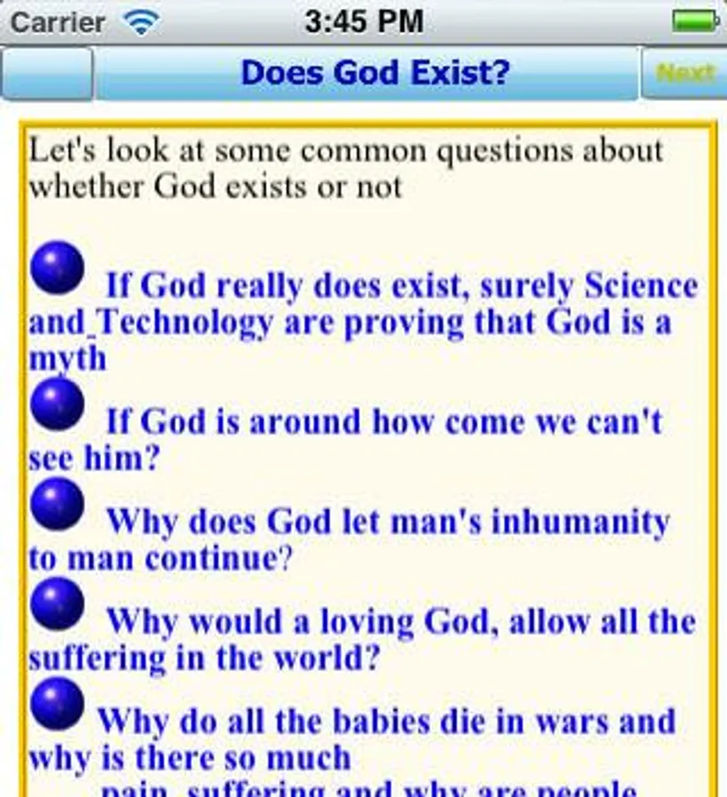 This app brings Questions and answers for life, from questioning if God even exists, to how to deal with depression, anxiety, marital relationships.