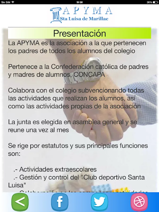 Through this application is to be in constant communication with all parents who are part of the school Apyma St. Louise de Marillac.
