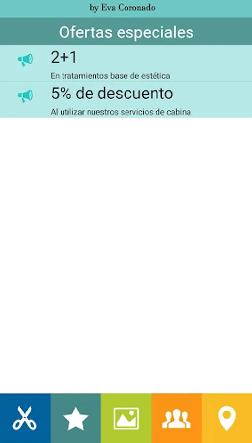The Special Offers , which will show the different services and treatments that we highlight monthly from the icon represented by a star.