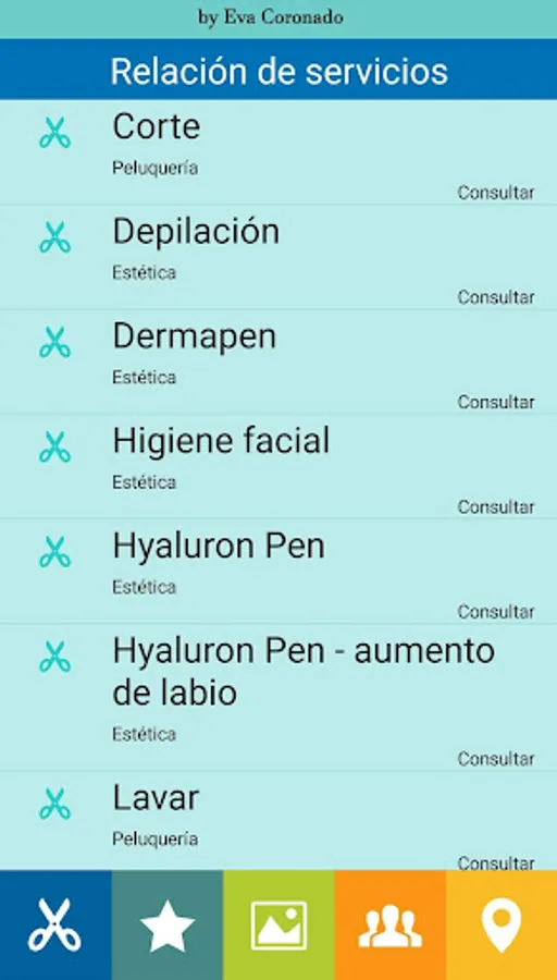 by Eva Coronado, as an Fem jocs application, manages the structure of the values and services offered by by Eva Coronado , from the main screen, showing visual aspects such as:
