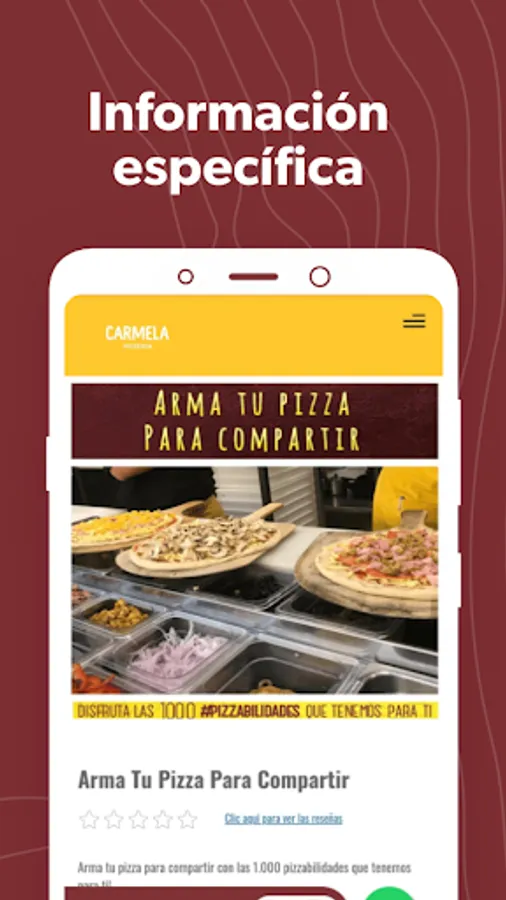 At Carmela Pizzeria you can build your pizza and enjoy the best pizza made by you! the best matured dough cooked in an Italian oven at 400 degrees and with many pizza qualities, made to measure.