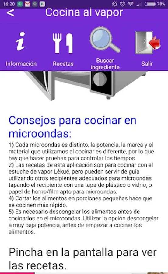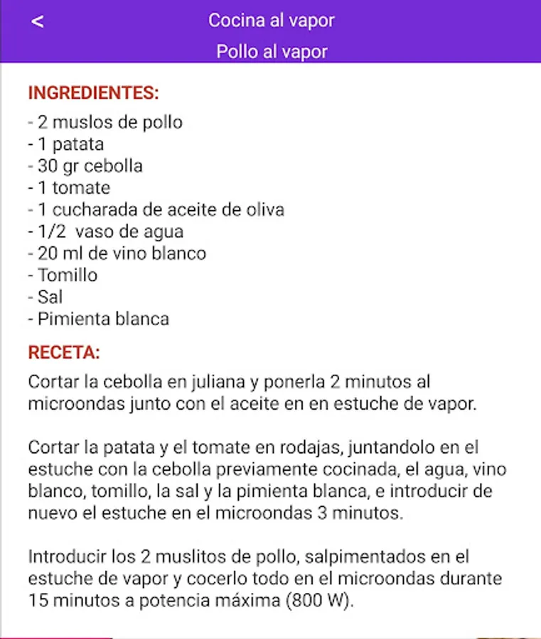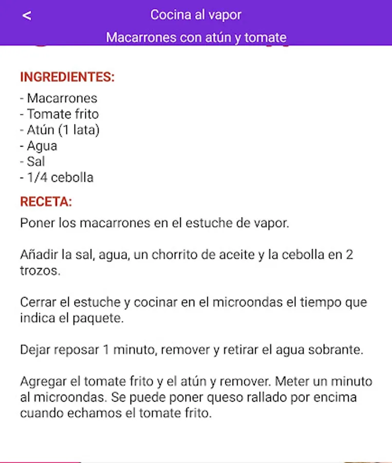 In this application you can find recipes for cooking rice, pasta, vegetables, meat, fish, etc., very easy and quick to make, so that in about 10 minutes you have a rich and nutritious lunch or dinner.