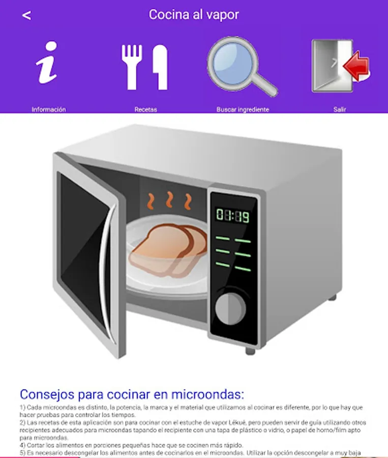 We must ensure that the container used is microwave safe, the recipes for this application are to use the Lékué or Ibili steam case, but can be used in another type, such as pyrex containers with a lid.