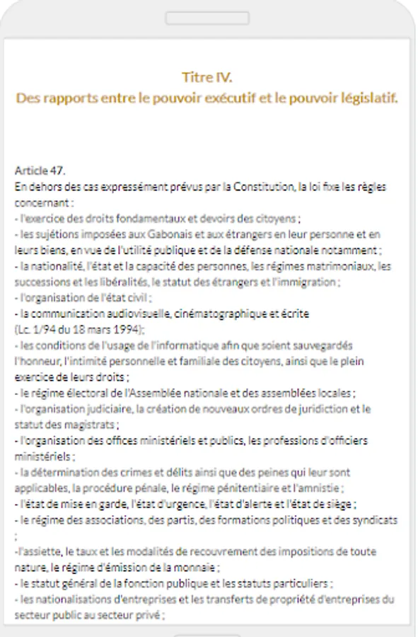The Constitution of Gabon is the fundamental law of Gabon. It was revised on January 11, 2018 to amend the 1991 Constitution (revised in 2003 and 20112) which itself followed that of 1961