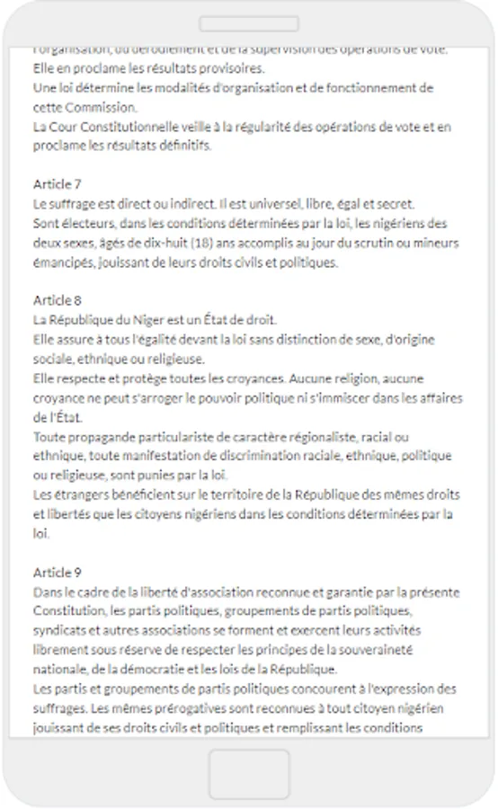 The Constitution of the Republic of Niger is the fundamental law of Niger. The current constitution, adopted by referendum on October 31, 2010, was promulgated on November 25 of the same year, thereby establishing the Seventh Republic.
