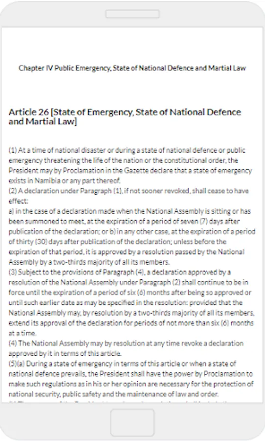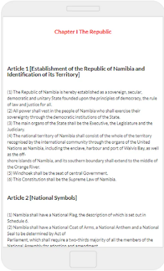 The Constitution of Namibia is the supreme source of national law of the Republic of Namibia. Adopted on February 9, 1990, a month prior to Namibia's independence from apartheid South Africa, it was written by an elected constituent assembly.