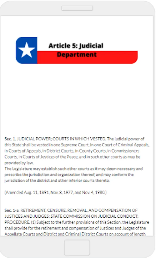 The Constitution of the State of Texas is the document that establishes the structure and function of the government of the U.S. state of Texas, and enumerates the basic rights of the citizens of Texas.
