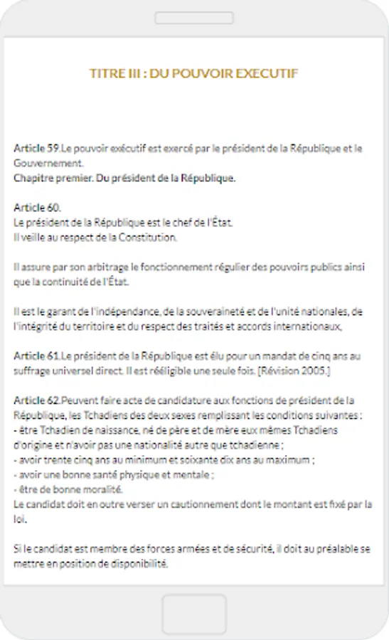 The Constitution of the Republic of Chad of 1996 is the fundamental law of Chad from 1996 to 2018. It was adopted in 1996, six years after Idriss Déby came to power. In its latest form, the Constitution consists of a preamble and 16 parts as well as 225 articles. It is replaced by a new constitution promulgated on May 4, 2018.