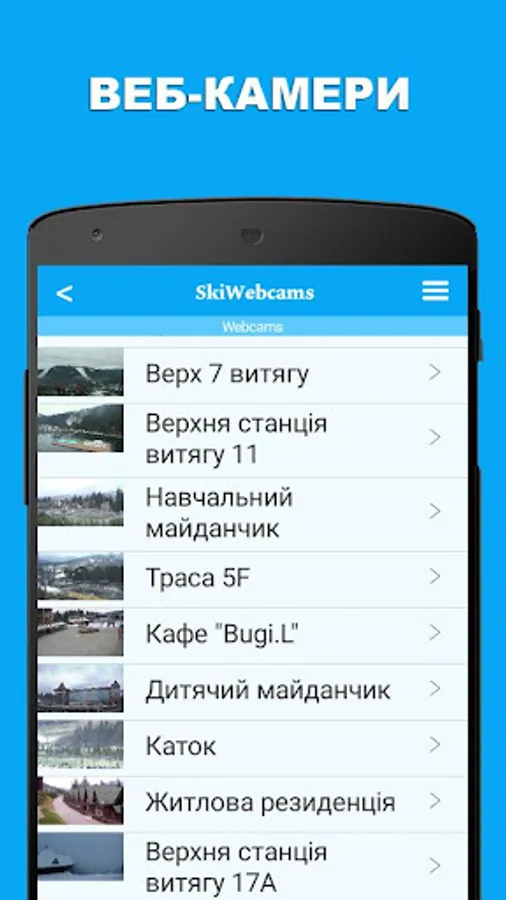 Mobile application for viewing webcams of the best ski resorts of Ukraine.
