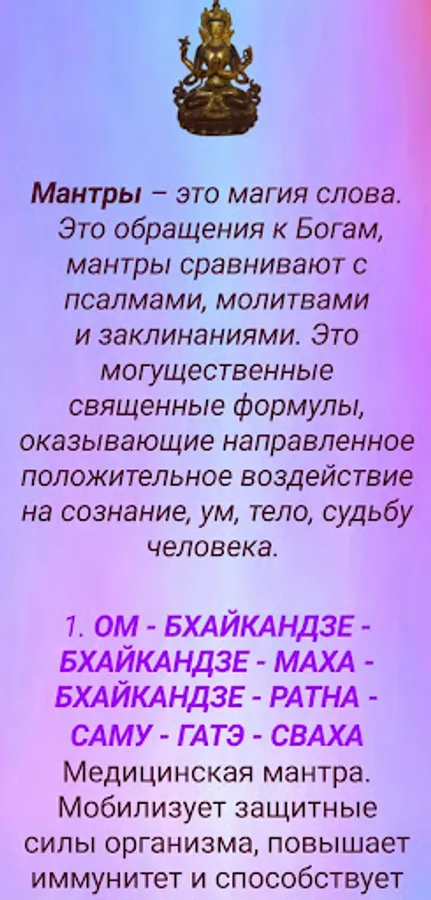 Reading and singing mantras will also help to gain the power of positive thinking, and cleansing from the negative. Powerful mantras will help you work with yourself. The mantra of health, the mantra of love, the mantra of money and wealth, the mantra of purification and healing from negativity, the mantra om — the mantra of power, the mantra for fulfilling desire. Various mantras are recorded in text format, you just have to choose the mantra of the day and start practicing - read the online mantra. After a certain time, you will notice how healing of the negative with mantras will take place, you will feel the energy of purification.